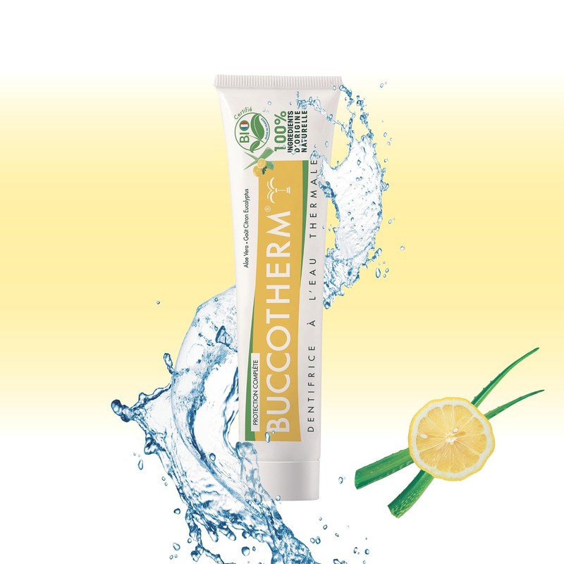 - Komplettschutz mit Zitronengeschmack Eukalyptus – Das 4er-Set Buccotherm Protection Blancheur & Pflege ist eine Bio-zertifizierte Zahnpasta aus 100 % natürlichen Inhaltsstoffen. Die Formel kombiniert das Thermalwasser von Castera Verduzan mit Aloe Vera, die für seine beruhigenden Eigenschaften bekannt ist, sowie mit Eukalyptuszitrone für ein erholsames Ergebnis mit einem Gefühl der Frische.