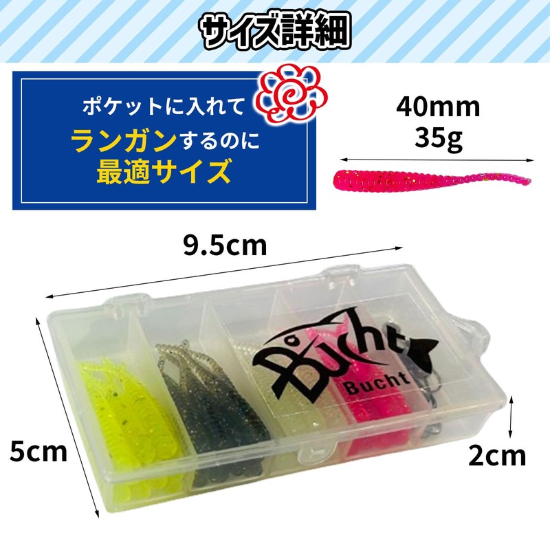 - Bucht 1.5 Inch (35mm) Aging Pintail Worms Set of 50 with Tackle Box