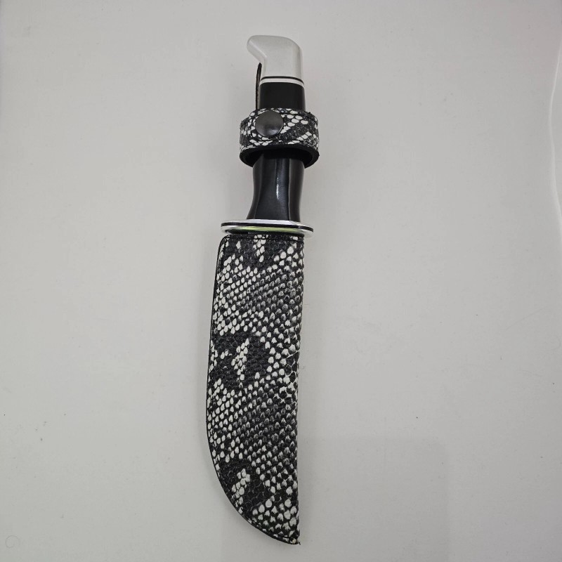 Buck Knives 119 Sheath Right Pull with Authentic FAUX DOMINO WHITE PYTHON SKIN leather