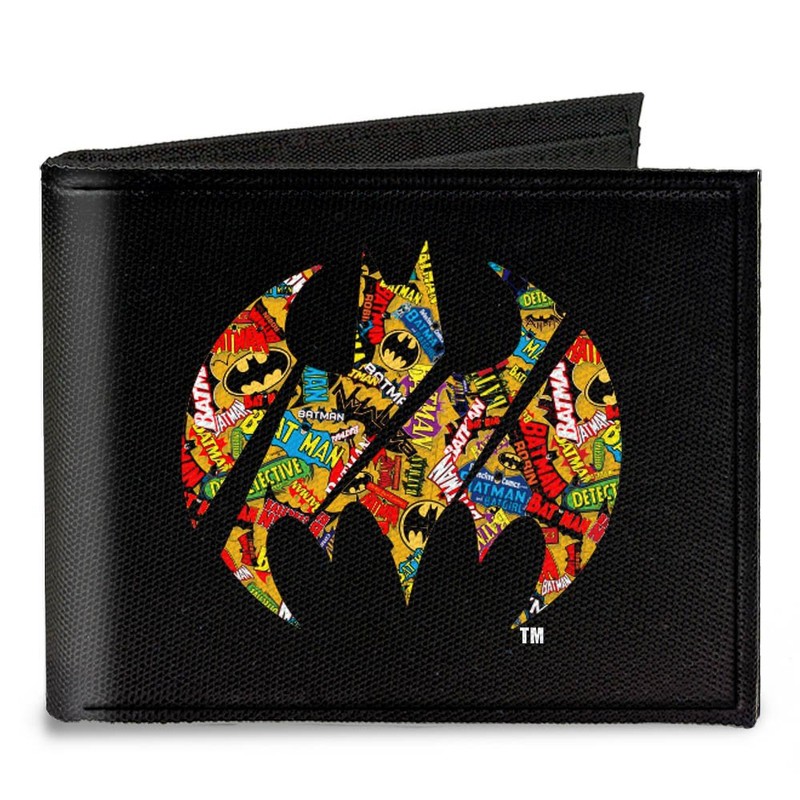 Buckle-Down Canvas Bifold Wallet - Bat Signal Black/Logos Stacked