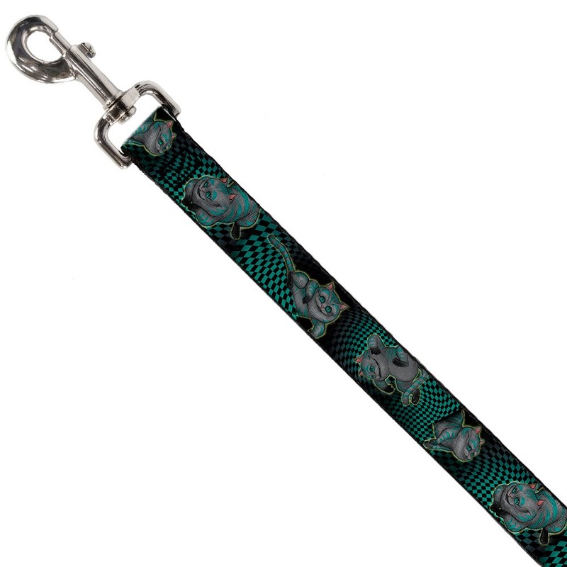 Buckle-Down DL-6FT-WDY315-W Pet Leash-Cheshire Cat 4-Poses Checkers Teal/Black, 6' L-1.5" W