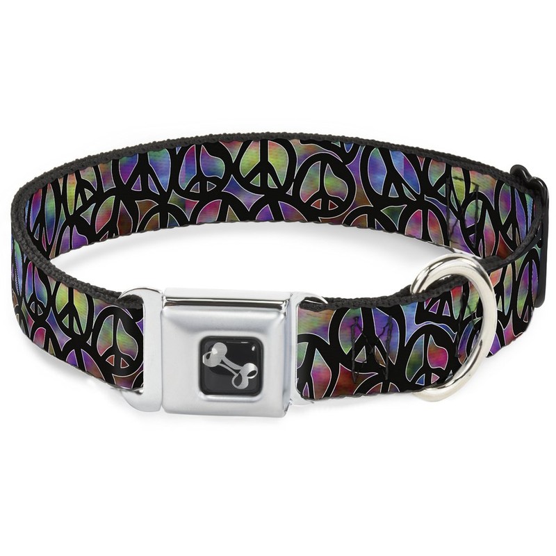- Buckle-Down Seatbelt Buckle Dog Collar - Peace Psychedelic - 1" Wide - Fits 11-17" Neck - Medium