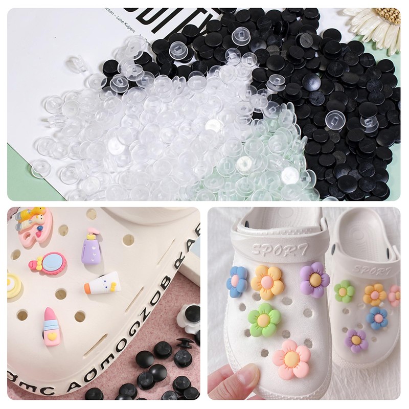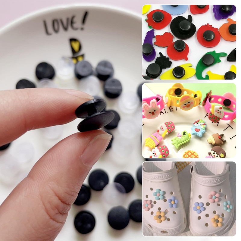 Buckle Plastic Button, 200 PCS Black and Transparent Buttons Charm Backs Accessories for Kids, Wristband Charm Backs for DIY Shoes Charm Backs Accessories