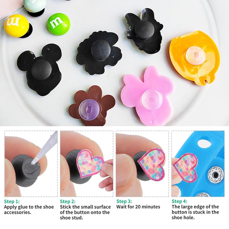 - DIY-friendly: Simply apply glue to the back of any accessory you want to attach, press it onto the button surface, and you have your customized DIY shoe buckle. A smooth surface and easy plug-in/plug-out design protect your shoes from damage.