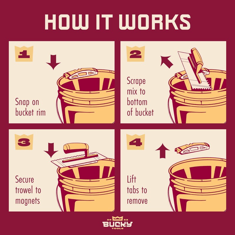 Bucky Tools Bucky Scrape – Universal 5-Gallon Bucket Trowel Scraper for Tile Work, Stainless Steel Edge Preserves Wet Mix And Reduces Waste, Magnetic Holder Secures Tools