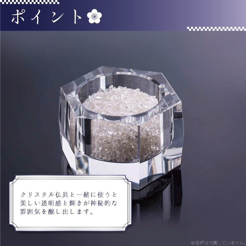 - Natural crystal beads. It is also compatible with crystal buddha fixtures. Place it inside the incense burner and it will shine beautifully with the clear crystals