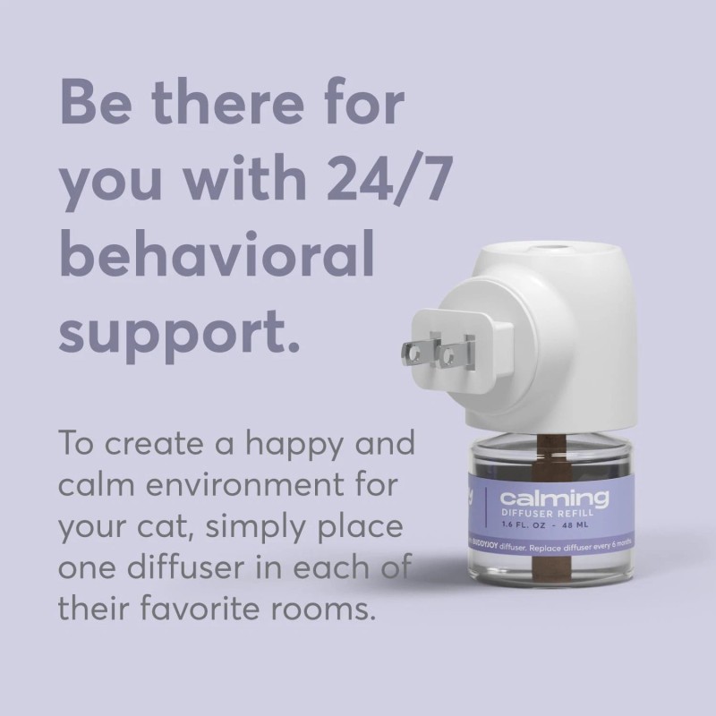 - EASY TO USE AND HASSLE-FREE BuddyJoy Cat Calming Diffuser Refills are simple to use: just insert the refill into your existing BuddyJoy diffuser, plug it into a standard outlet, and let the formula do the rest. No complicated setup or maintenance required. The refills fit seamlessly into the diffuser, ensuring your home stays a peaceful haven for your cat—effortlessly. And for added convenience, the BuddyJoy plug rotates counter-clockwise, making it compatible with both vertical and horizontal wall outlets.
