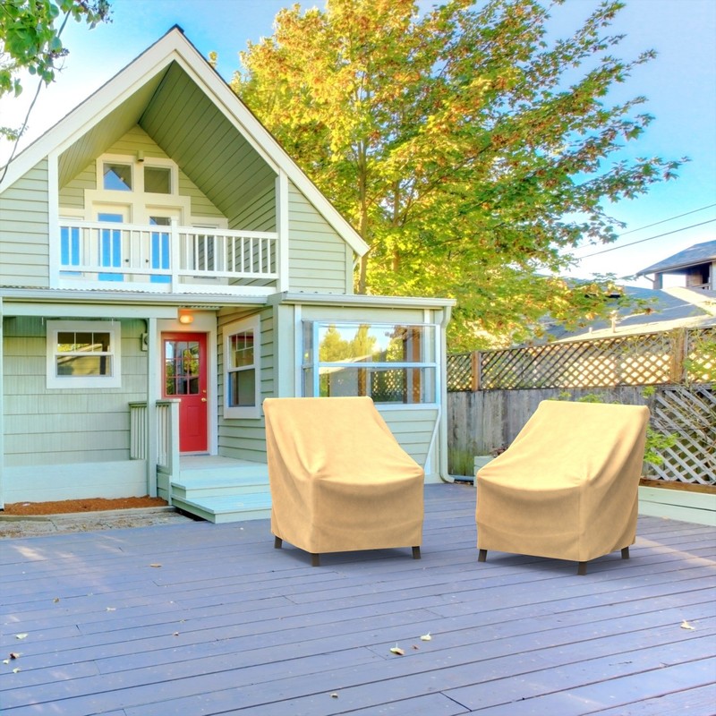 The Budge All-Seasons Patio Chair Cover, Extra Small provides lasting protection to your outdoor patio chair. The All-Seasons Collection by Budge combines a simple, yet elegant design with exceptional outdoor protection. Made from a 3-layers of spun-bond polypropylene with a waterproof inner layer and UV resistant coating, this cover keeps your furniture protected from the elements. The material is breathable to allow trapped condensation to flow through the cover, helping to prevent mold, mildew and rust. Straps and buckles ensure that your cover stays secure in windy conditions. With our All-Seasons Collection you’ll never have to sacrifice style for protection. This collection will compliment nearly any preexisting patio décor, all while extending the life of your outdoor furniture. Available in a neutral blue or tan color, this patio collection will cover and protect your patio furniture, season after season. This patio chair cover measures 31" H x 30" W x 27" D