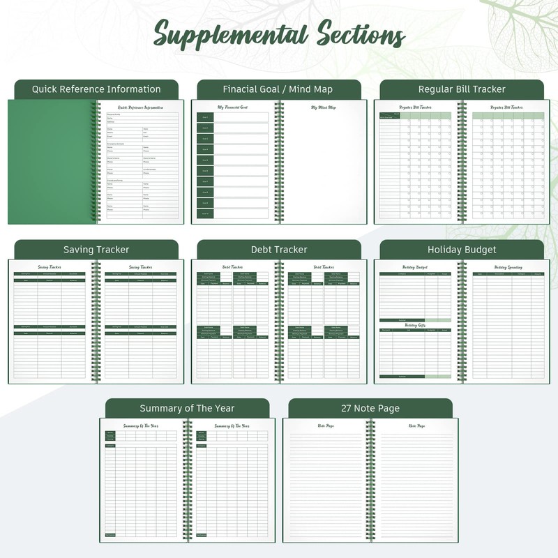 - All-In-One Finance Planner: Our expense tracker notebook includes sections for financial goals, mind maps, regular bill tracking, savings tracking, debt tracking, holiday budgets, and yearly summaries. By effectively managing your money with this comprehensive monthly budget planner, you can quickly pay off debt and save towards big purchases.