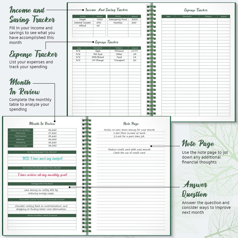 - Say Goodbye to Reckless Spending:Plan your 12-month expenses in advance, use monthly calendar to track important dates, record income, savings and expenses, review at the end of month, correct bad spending habits and better budget in the next month. Each month have a lined page of free notes for write down any extra info if needed.