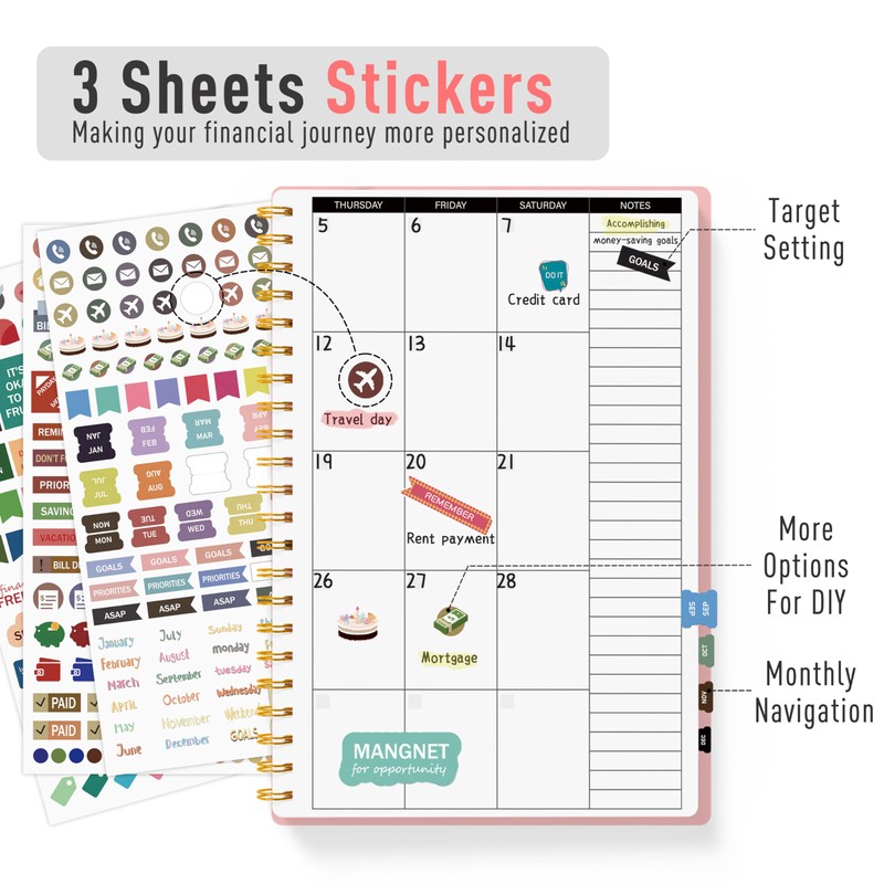 - Spacious Planning and Personalization - Benefit from ample space provided by full-page calendars each month for jotting down important dates and reminders, complemented by three sticker sheets for personalized organization and a touch of fun.