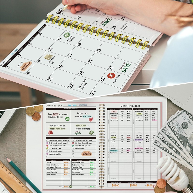 - Durable and Convenient Design - Rely on our budget planner's durable, water-resistant cover for protection against spills and wear, secured with an elastic band closure, and equipped with a convenient pocket for storing receipts or notes, ensuring longevity and convenience for everyday use.