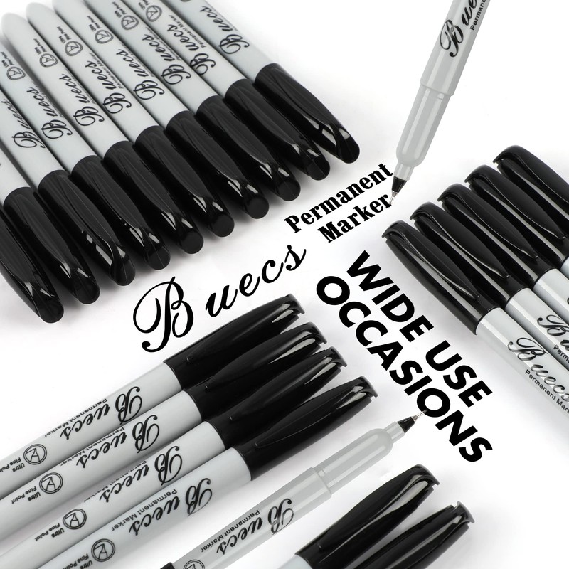 Buecs Permanent Markers, 60 Count Ultra Fine Point Black Permanent Markers, Works on paper, Plastic, Stone, Glass, Metal