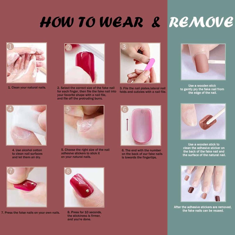 2:If you use self-adhesive stickers to wear false nails, the false nails can be reused. If you use glue, they cannot be reused.