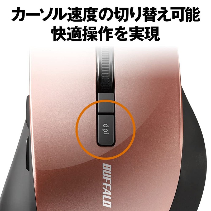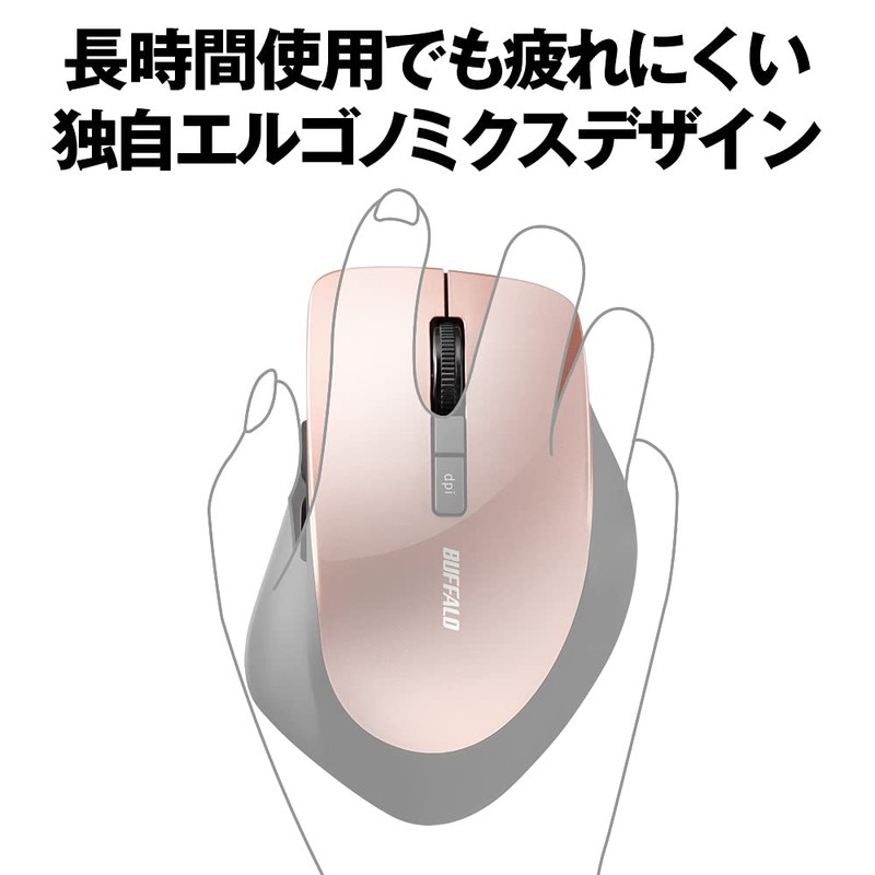 Buffalo BSMBW325BP Wireless Mouse, Wireless Quiet, 5 Buttons (Back/Forward Buttons) DPI Switching, Blue LED, Beige Pink