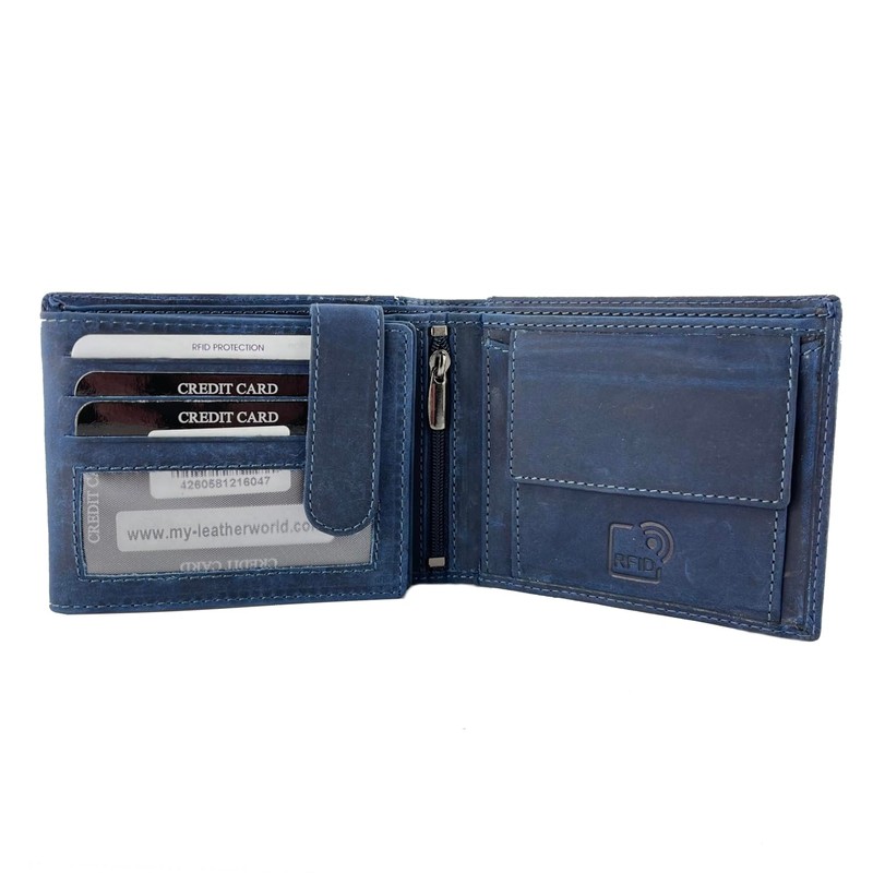 BUFFALO HILL 2394 Wallet Buffalo Leather Wallet I Genuine Leather Wallet I Landscape Format Men's Wallet I RFID Protection I Leather Wallet with Coin Compartment I 9 Card Slots, blue, Modern