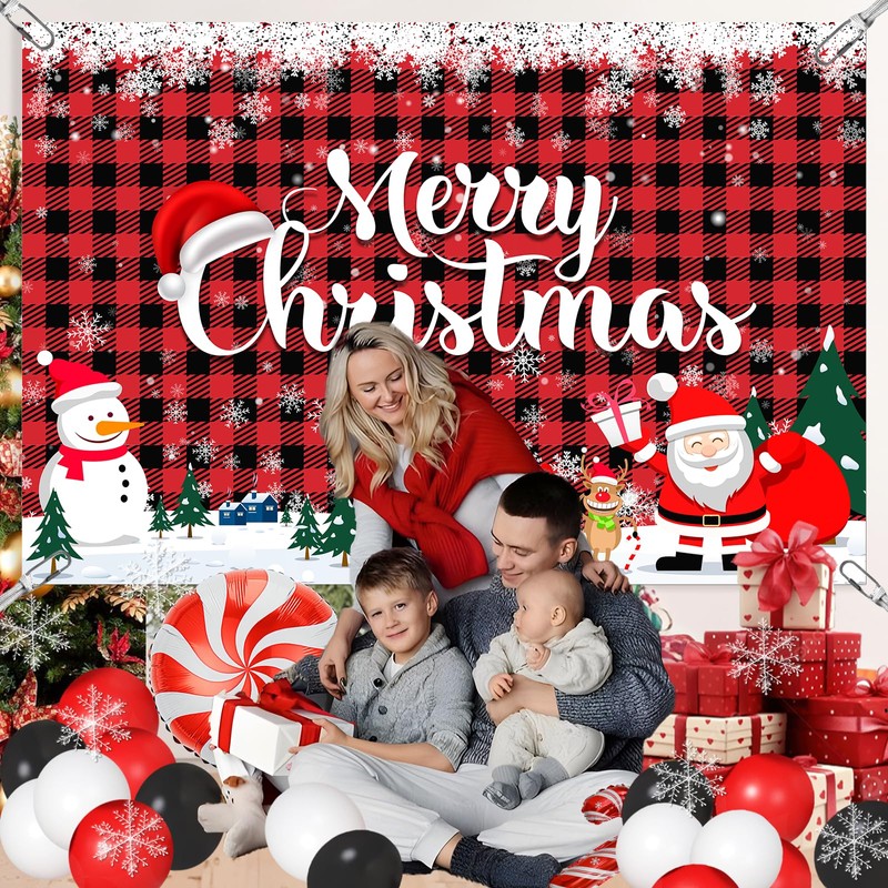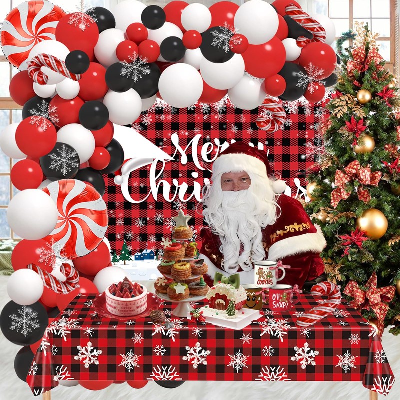 - Plaid Theme Christmas Balloon Arch Kit: Our christmas plaid theme decorations are perfect for baby shower birthday party. The christmas decorations include a variety of red and white black balloons, which a red and white black christmas balloon garland arch kit with snowflake plaid christmas tablecloth and Merry Christmas backdrop. The christmas decorations are designed to create a cute and playful atmosphere for your party.