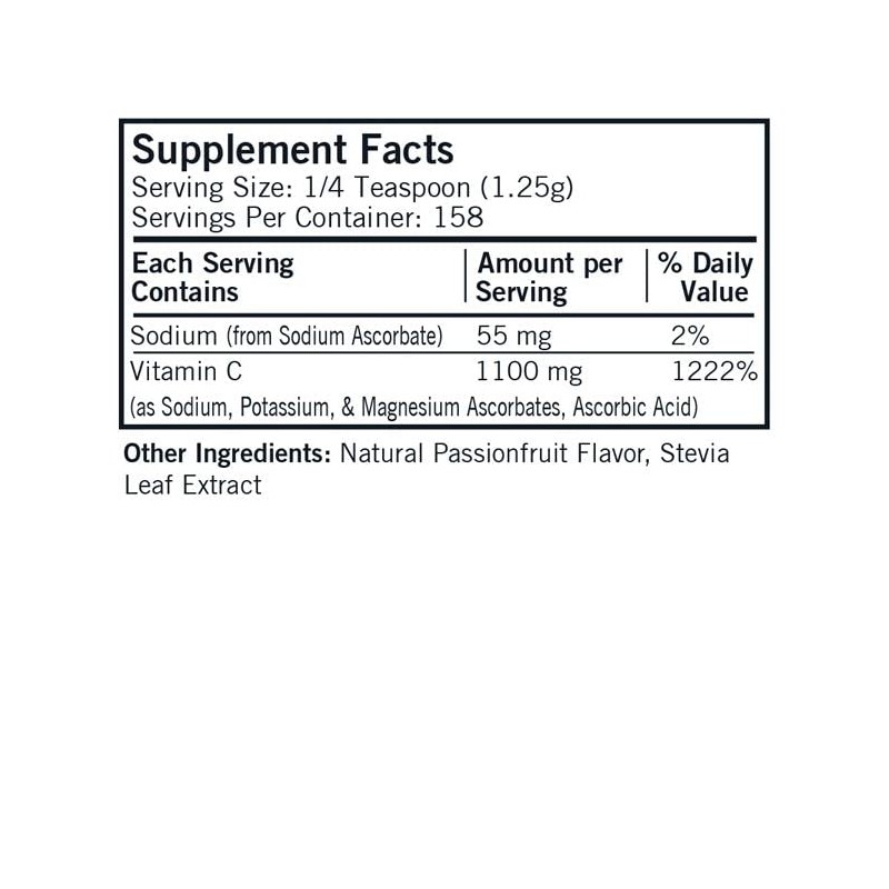 - Offers powerful antioxidant activity for immune system support and other health benefits. This product offers high potency (1,100 mg) vitamin C in a buffered powder formulation. It’s made with sodium, potassium and magnesium ascorbates to produce a buffered, acid balanced formulation that’s very gentle on the stomach.
