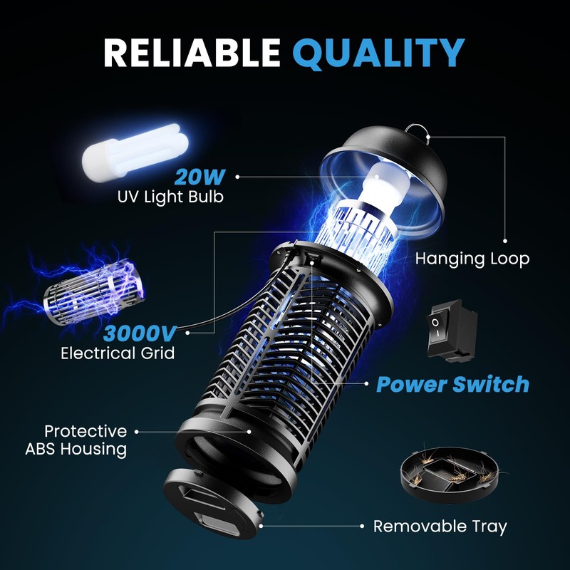 Bug Zapper Outdoor Indoor 3000V 20W Electric Mosquito Zapper Fly Trap Insect Killer Waterproof with Power Switch and 4.92ft Power Cord for Home, Garden, Backyard, Camping, MCQ2402CP