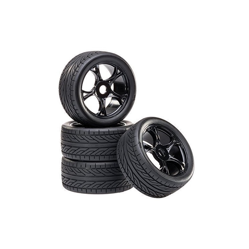Buggy Tyre Rim Set Street with 5 Double Spoke Rim Black 1:8 partCore