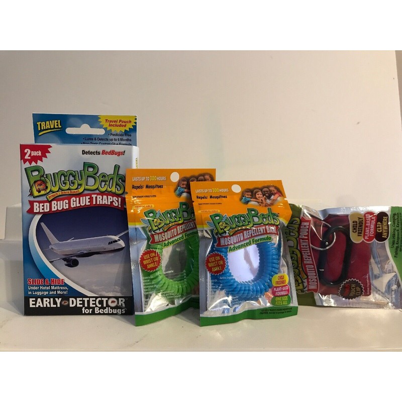 BuggyBeds 2 PK Buggy Beds Bed Bug Glue Traps + BANDS AND POUCH! NEw