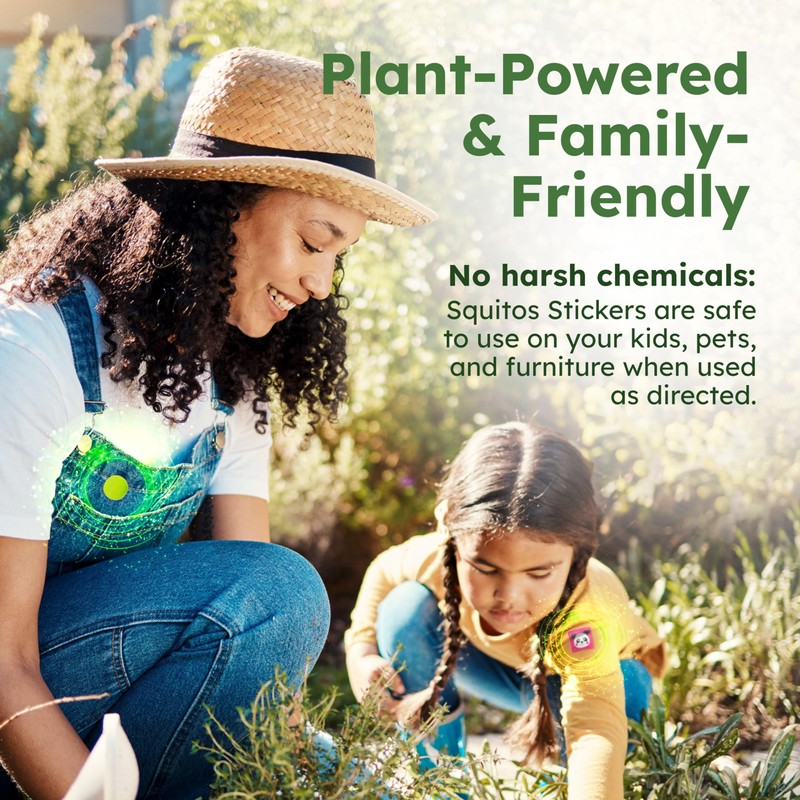 • Squito Stickers are our easy-to-use mosquito repellent patches that are essential-oil based and do not contain DEET or other harmful chemicals. It contains natural Citronella oil that effectively repels mosquitoes. Just stick to any surface such as your clothing, hats, bags, strollers, and more. Squito Stickers are perfect for pool days, camping, or any other outdoor and indoor activities.