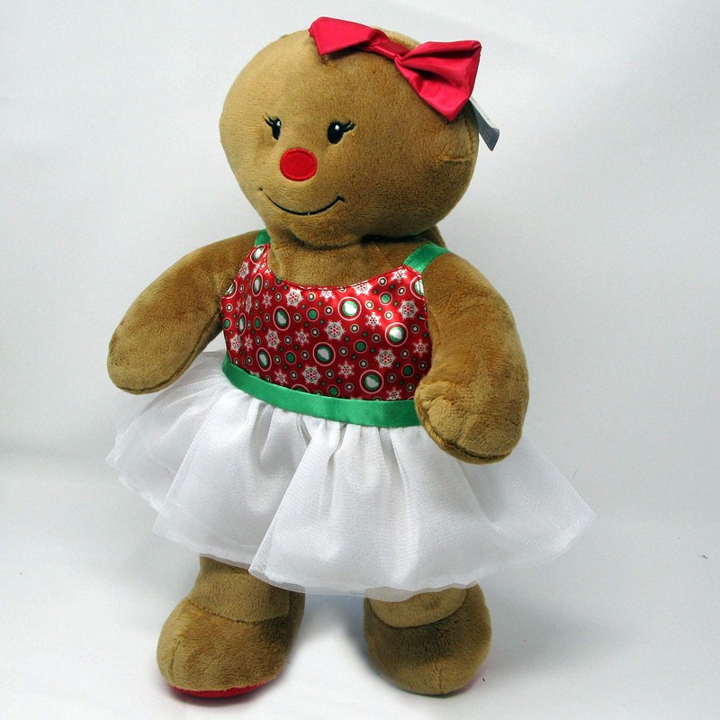 Build-A-Bear workshop BABW Gingerbread Girl Plush in Red and White Christmas Dress