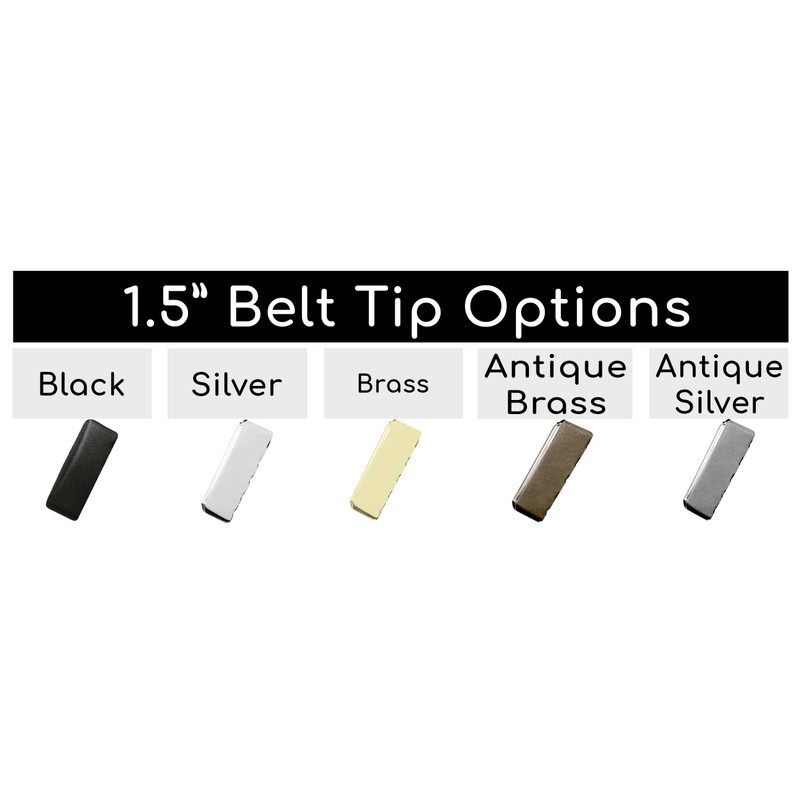 This canvas replacement belt fits most military buckles that are 1.5 inches wideTIP OPTIONS: Black, Silver, Gold, Antique Silver, and Antique GoldBelts are composed from a high quality, color fast, polyester and cotton blend which won't fray, and is very durable.Sizing: Size chart can be found in the listing images and the total length of the belt is in RED FONT.