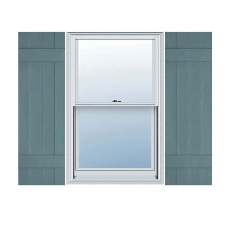Builders Edge 14 in. W x 33 in. H, Custom Four Board Joined (2 Batten), Board-n-Batten Shutters, Includes Matching Installation Spikes (Per Pair), 004 - Wedgewood Blue