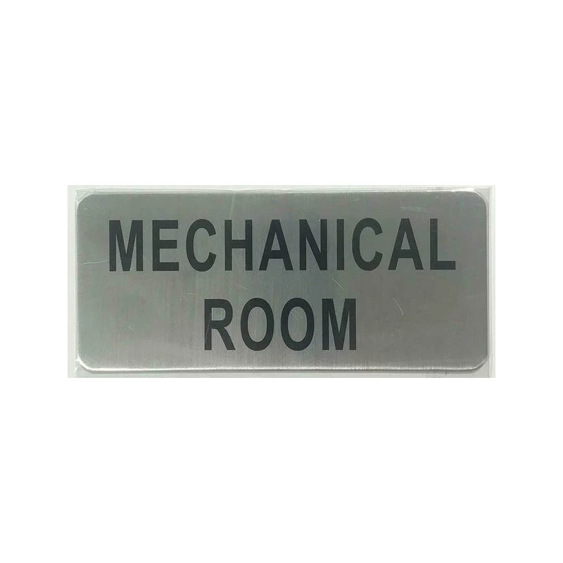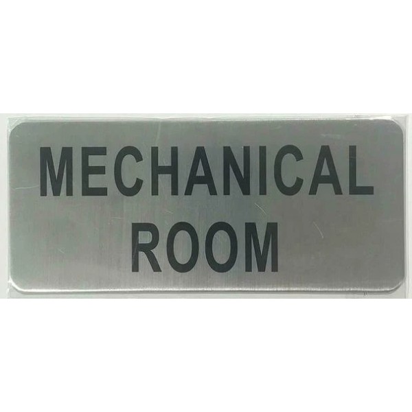 BUILDINGSIGNS.COM MECHANICAL ROOM SIGN (BRUSHED ALUMINUM,3x8)-