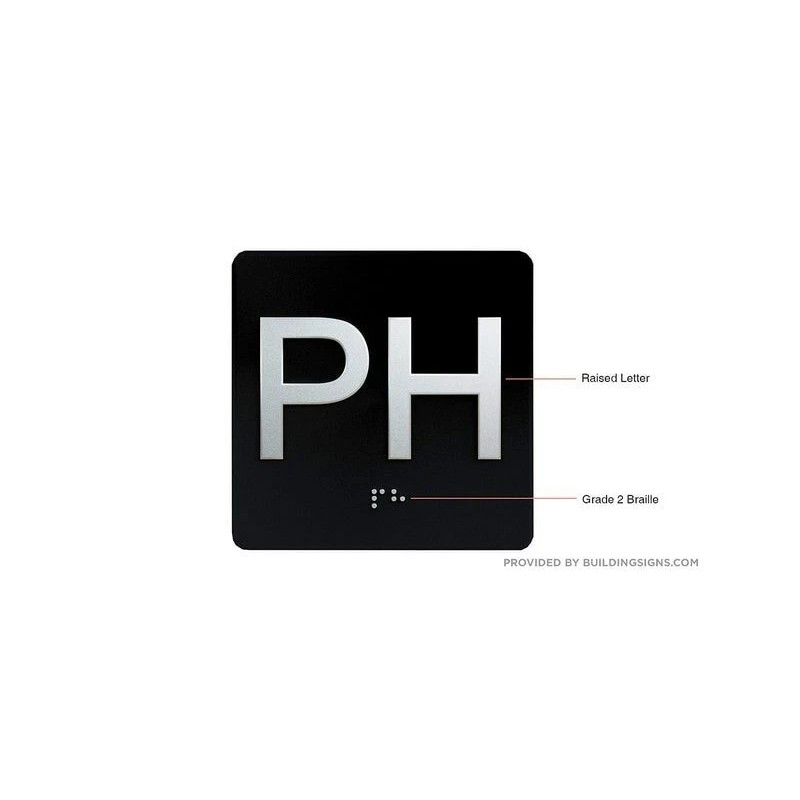 PH Elevator Jamb Plate Sign (Penthouse JAMB Plate) with Braille Raised