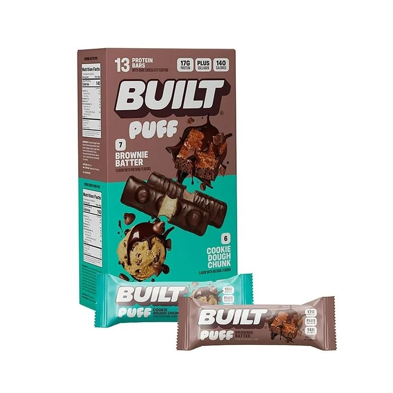 Indulge in Delicious and Nutritious BUILT PUFF Protein Bars Introducing our delectable BUILT PUFF Protein Bar, a perfect blend of taste and nutrition that's ready to go when you are. Satisfy your cravings while nourishing your body with the nutrients it needs. Enjoy the irresistible combination of cookie dough and Brownie Batter, all packed into a protein-rich bar for your convenience. About Built At Built, we're redefining the notion that indulgent snacks can't be healthy. We're committed to elevating the snacking experience by using only the finest ingredients to create healthier options without sacrificing the flavors we all love. Our focus is on crafting the best tasting protein bar possible and sharing it with the world. High-Quality Ingredients for a High-Protein Snack Our BUILT PUFF Protein Bars are more than just a sweet treat. They're a high-protein snack that's perfect for fueling your workout, satisfying your afternoon hunger, or simply indulging your sweet tooth. And all for less than 140 calories. We use only the finest ingredients and protein blends, ensuring that every component of a Built Bar serves a purpose, with no unnecessary fillers or fluff.