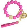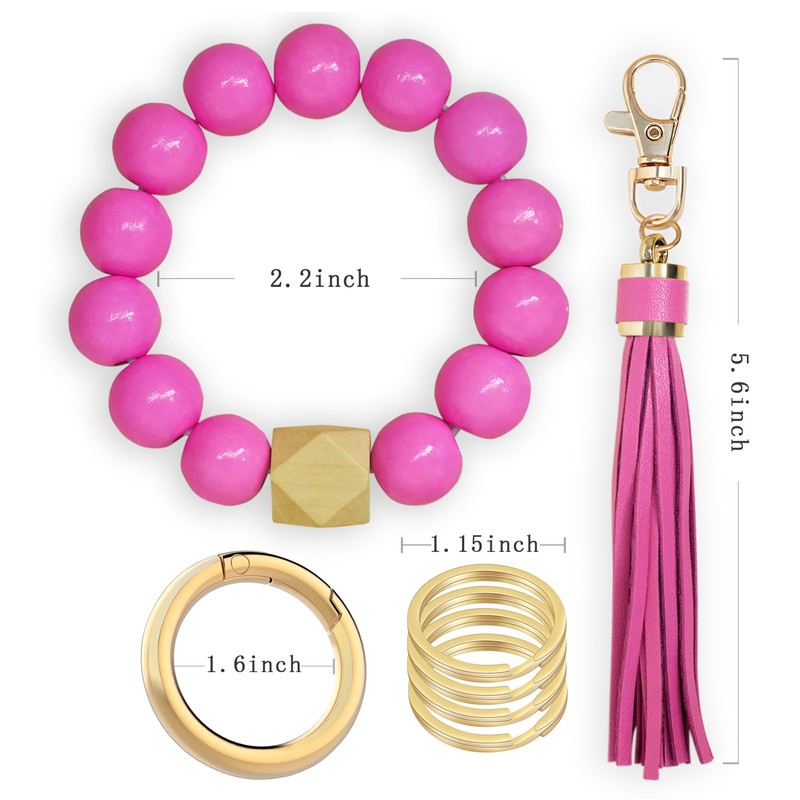 BuitBoll Wristlet Keychain with 4 Key Rings Wooden Beaded Bracelet Key Chain Bangle Key Holder with Leather Tassel (Rose Red)