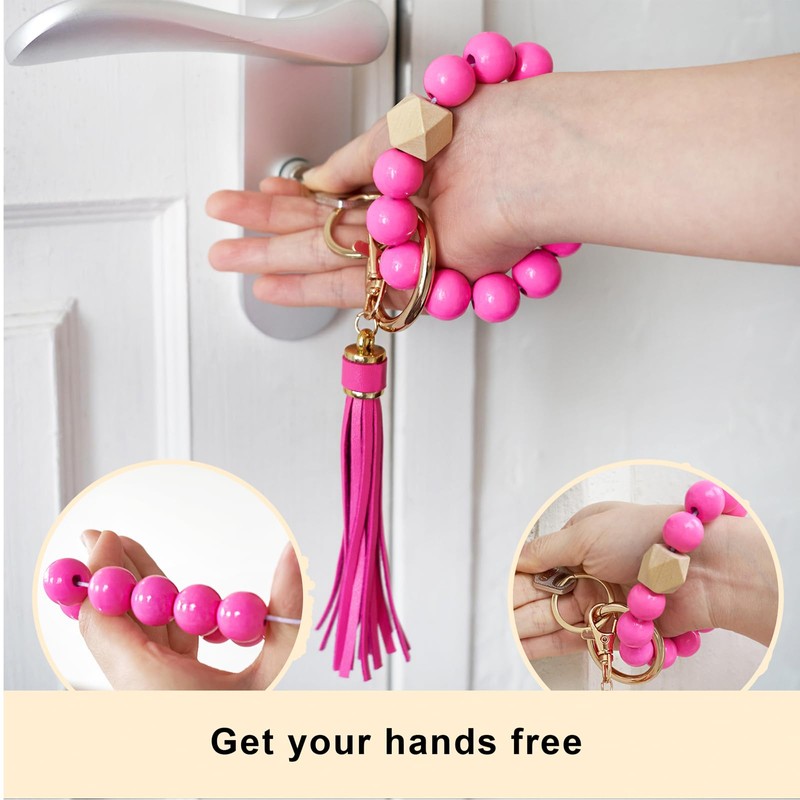 • 2. Made with high-quality wooden beads to ensure durability and longevity. Keys sit organized easily on the key chain and it’s super easy to around on your wrist or hold onto with hands;