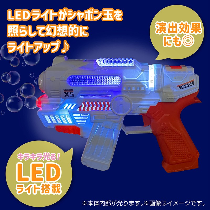 - 【Lighting! Bubble-gun: When you pull the trigger, the bubble will automatically spray large amounts with the pistol sound; At night, the LED lights illuminate the bubble for a fantastic effect. (2-way) Can be used indoors as a toy for guns