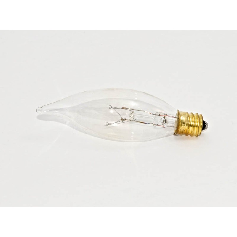 Bulbrite brand decorative lamp with candelabra base. 15 Watts for less power and light. 130 volts for longer life and resistance to voltage fluctuations.