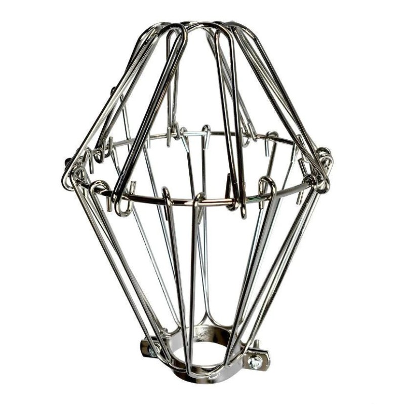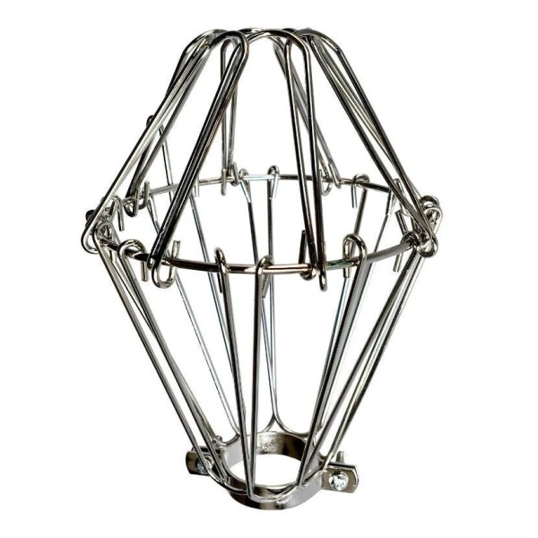 Nickel light bulb cage with easy open and close design for quick re-clamping.