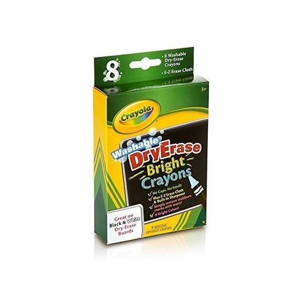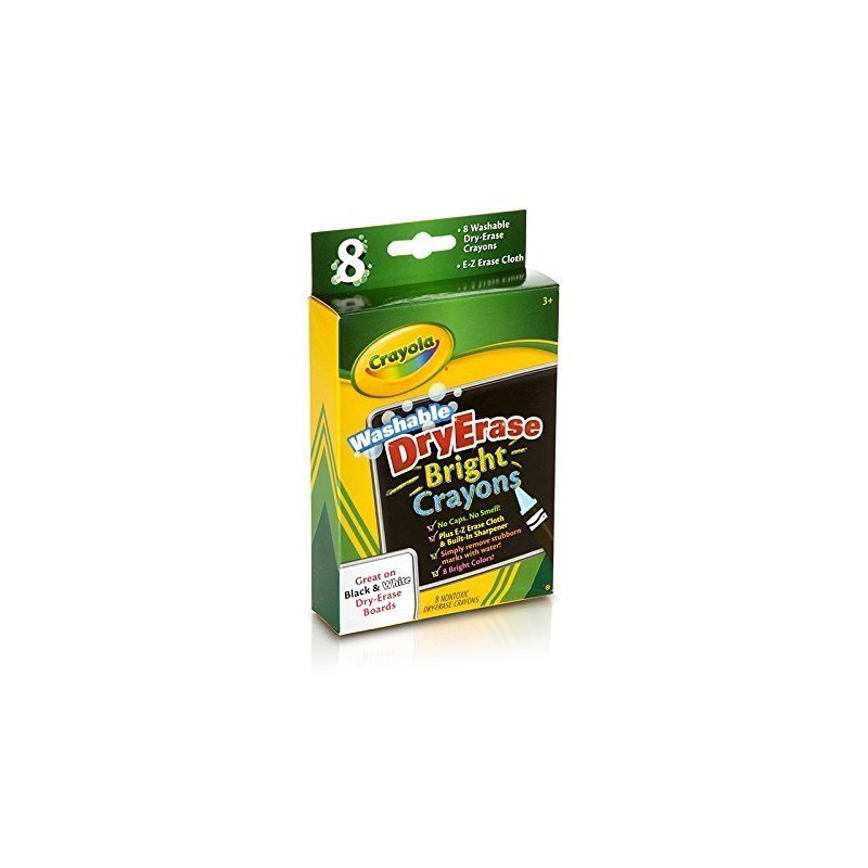 CRAYOLA-Dry-Erase Crayons. These vibrant colors are great on white, dark, or clear surfaces and unlike standard dry-erase markers have no odor, no caps to lose, and they won't dry out! This package contains 8 dry-erase bright crayons in assorted colors, on E-Z Erase Mitt and built-in eraser. Washable and non-. Conforms to ASTM D4236. Imported. All products are imported from the USA. All electronic products must be used with a step down/up converter for Indian voltage compatibility. Genuine Imported Products from USA. Prices include Import Custom Duties and Taxes with Free Shipping to your doortstep!
