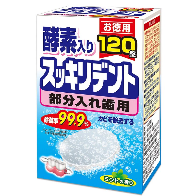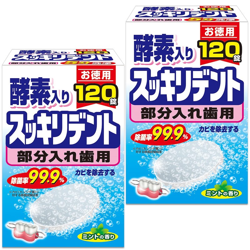 • Set of 2 x 120 tablets. For partial dentures. Powerful disinfecting keeps dentures clean. Enzyme formula thoroughly cleans the dirt that adheres to the denture well. Eliminates odors Bleach cleaning ingredients eliminate denture odors. Increased effectiveness in daily use. Value set of 2