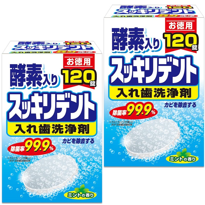 [Bulk Purchase] Clean Dent Denture Cleaning Agent for Total Dentures with Enzymes, Mint Scent, 120 Tablets x 2
