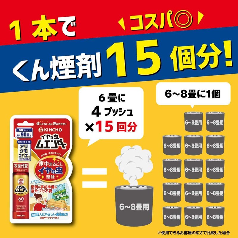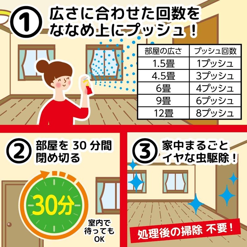 - One-push unpleasant pest control agent for space injection. No hassle pre-preparation required. 60 Push