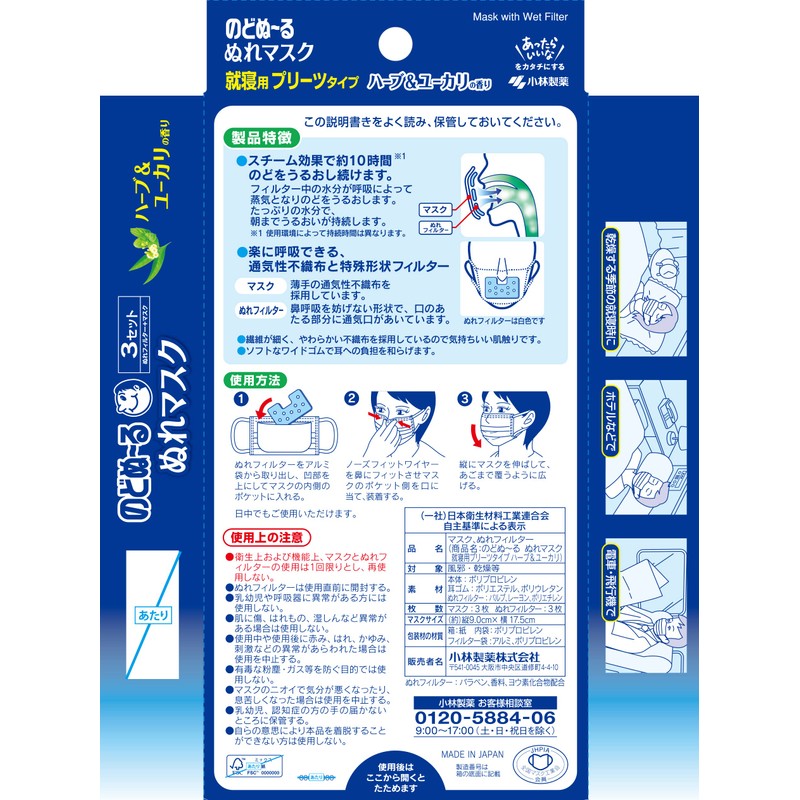 [Bulk Purchase] Noduru Nuree Mask for Sleeping, Herbal & Eucalyptus Scent, Pleated Type, 3 Sets x 3 Pieces