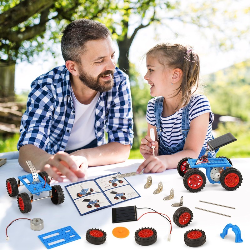 - SOLAR-POWERED SCIENCE FUN: Build 4 unique solar-powered toy cars that convert sunlight into motion! Each kit contains everything required, a mini screwdriver, and step-by-step instructions for hands-on STEM learning. Watch physics in action as solar energy drives the wheels—no batteries required! (Pack contains 4 cars, 4 manuals, 4 screwdriver)