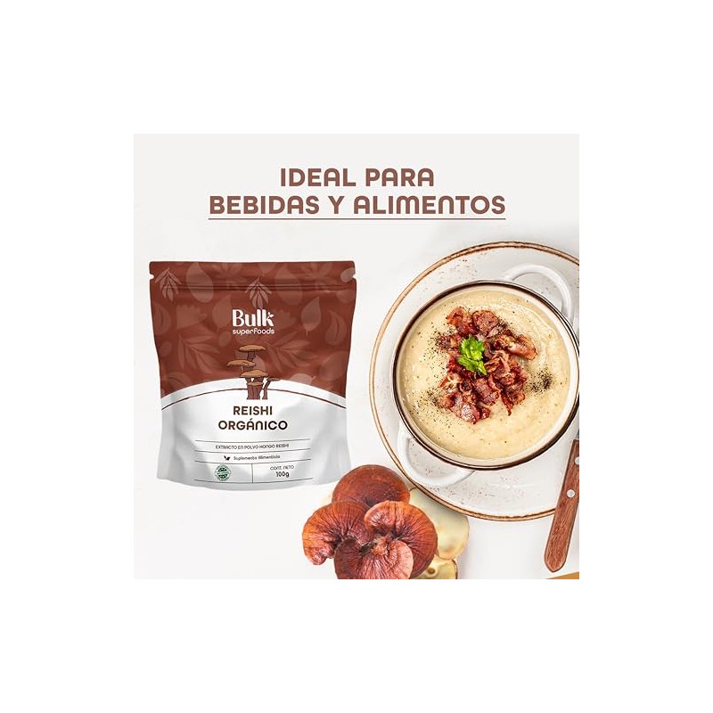 Acerca de este artículo EXTRACTO DE REISHI PURO | Elaborado con Ganoderma Lucidum en polvo, garantizando calidad y efectividad en cada porción. FORMATO PRÁCTICO | 100 g de producto a granel, perfecto para quienes buscan un suplemento rendidor y versátil. FÁCIL DE USAR | Incluye scoop dosificador para una medida exacta; disuélvelo en bebidas o alimentos de tu preferencia. APTO PARA USO DIARIO | Recomendado para consumir de 1 a 2 veces al día, diseñado para integrarse a tu rutina fácilmente. BULK SUPERFOODS | Somos una Marca de Alimentos 100% Naturales y Orgánicos. Tomamos lo mejor de la naturaleza para llevarte productos únicos, saludables y deliciosos que aporten una nutrición consciente y beneficios a tu día a día. Elige entre mas de 20 productos pensados especialmente para ti, incluyendo cápsulas, suplementos alimenticios, harinas, endulzantes, quínoa entre muchísimos otros. Visita nuestra tienda, ¡estamos seguros de que te encantara.