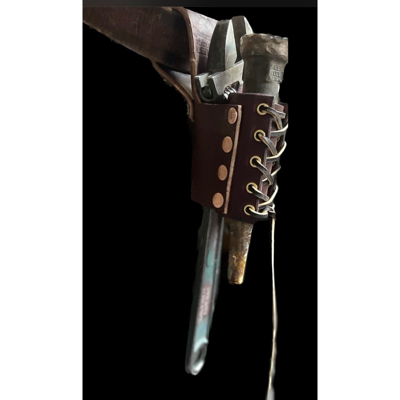 - Made from 10-12 oz Latigo leather Has ten plated eyelets 10 oz Latigo leather lacing for adjustment Has a leather insert to prevent your pin from hanging up on the laces upon insertion Will hold a large or small bull pins securely fits most wrench sizes Bull Pin and wrench not included