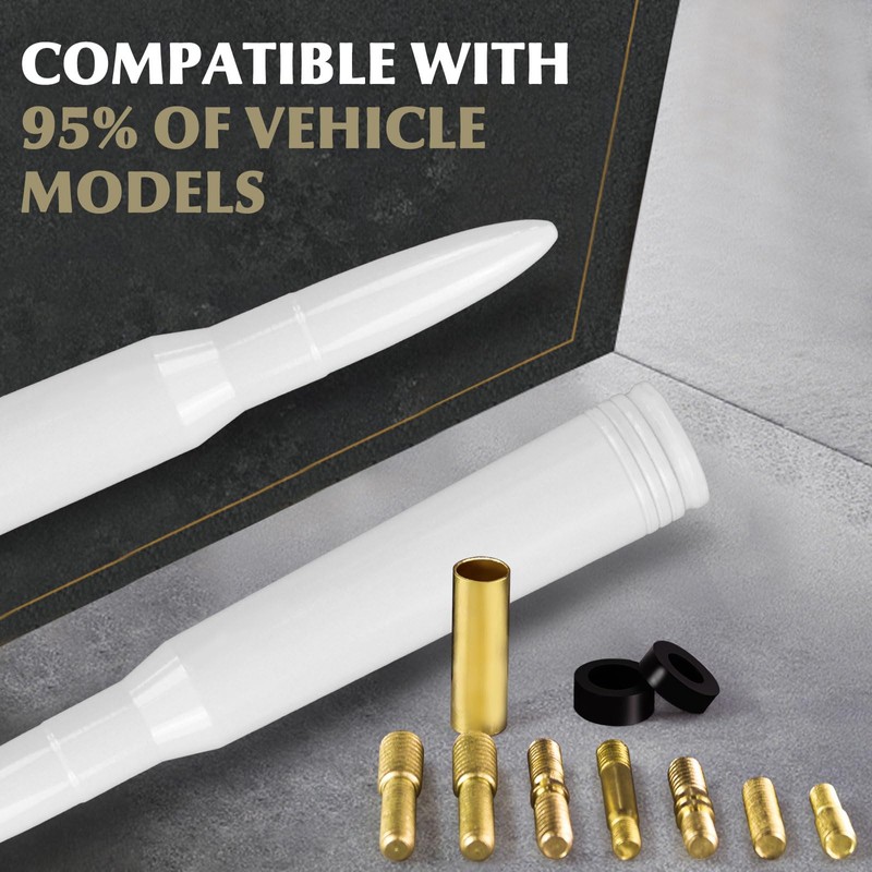 White Bullet Antenna 50 Cal Bullet Car Truck Antenna Truck Accessories Silverado 1500 F150 F250 F350 Ram 1500 GMC Sierra 1500 Ranger Short Replacement Antena (White, 5.5inch)