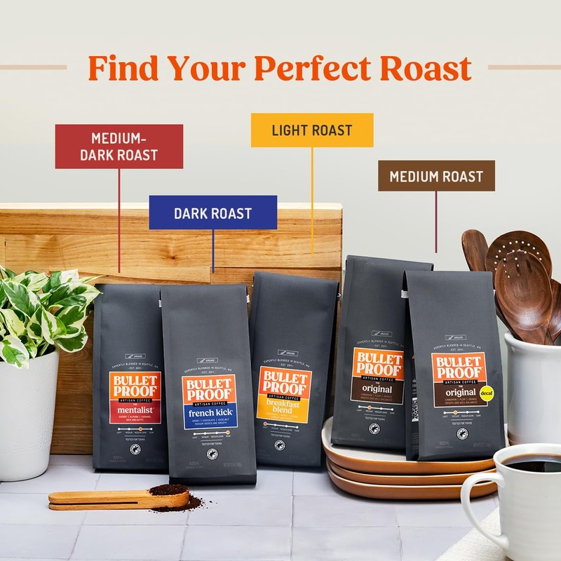 - Contains three 12-ounce bags of Bulletproof Original Blend Medium Roast Ground Decaf Coffee