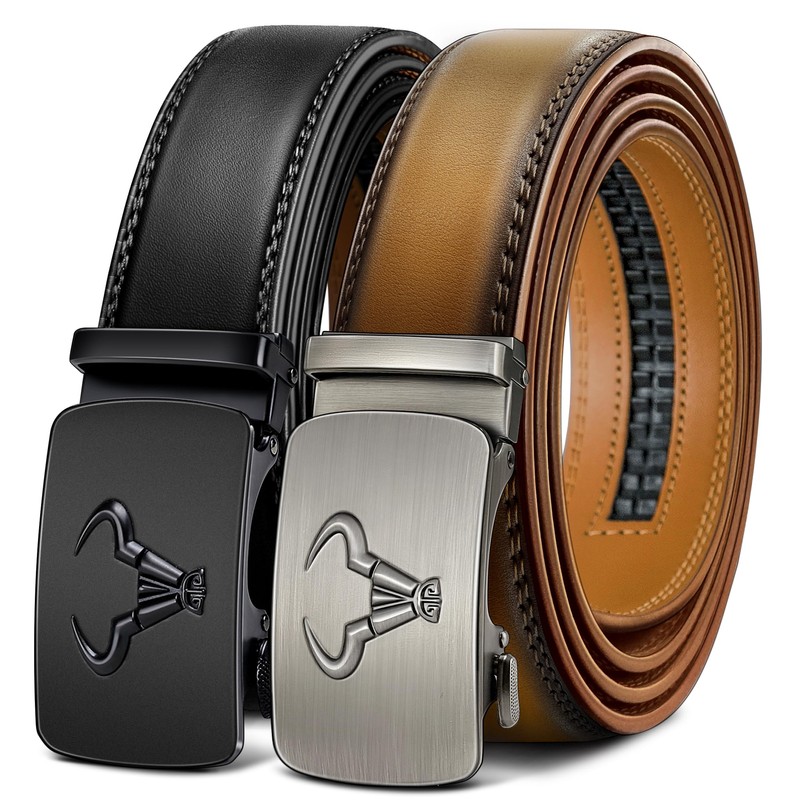 BULLIANT Men belt 2Pack,Leather Ratchet Belt for Gift Men Dress Casual Jeans 1 3/8",Cut for Fit(Black/Tawny,30"-36" Waist Adjustable)