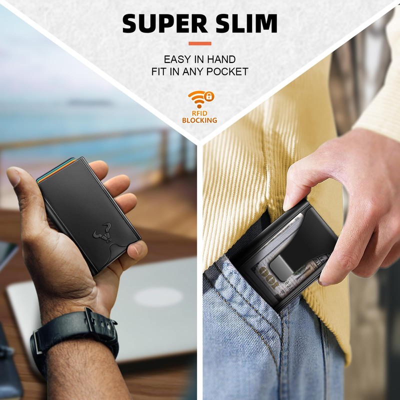 BULLIANT Slim Wallet, Men Front Pocket Wallet Money Clip 5Cards-Sliding Design