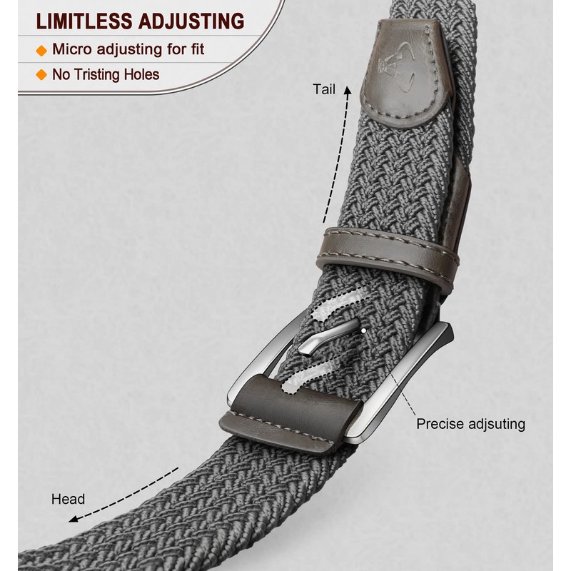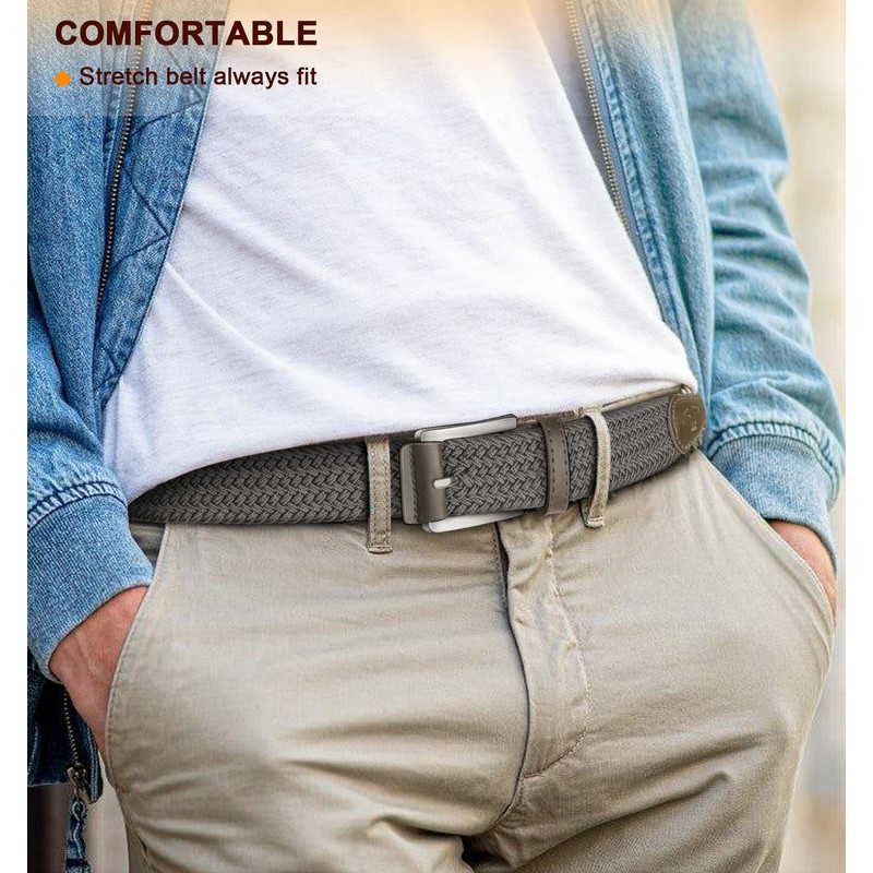 - Perfect fit: The woven stretch men's belt allows you to close the buckle in any position of the strip, so you get the perfect size and fit on your waist.